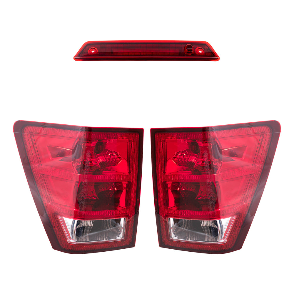 Brock Replacement Driver and Passenger Side Tail Light Assemblies with Bulbs, Sockets & Wiring, and 3rd Brake Light 3 Piece Set Compatible with 2005-2006 Grand Cherokee