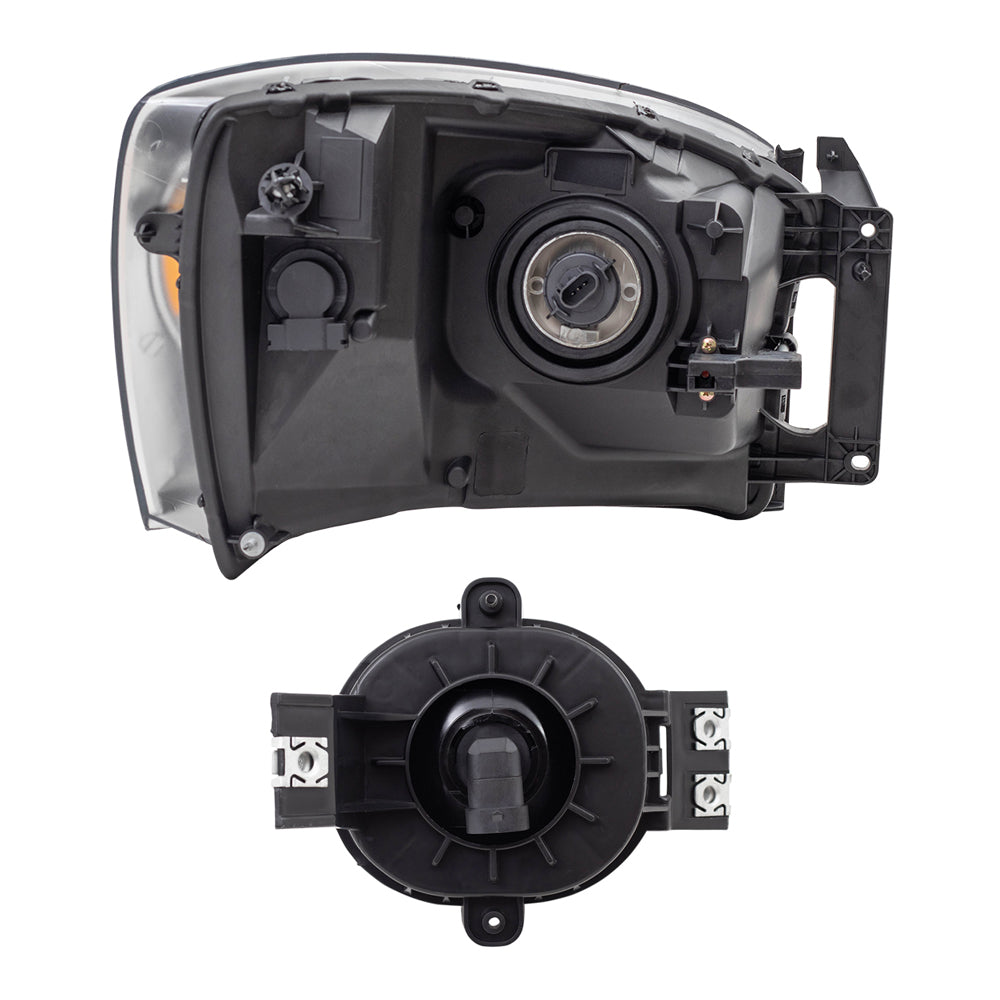 Brock Replacement Driver and Passenger Side Halogen Combination Headlight Assemblies and Fog Light Assemblies 4 Piece Set Compatible with 2007-2008 Ram 1500 and 07-09 Ram 2500/3500