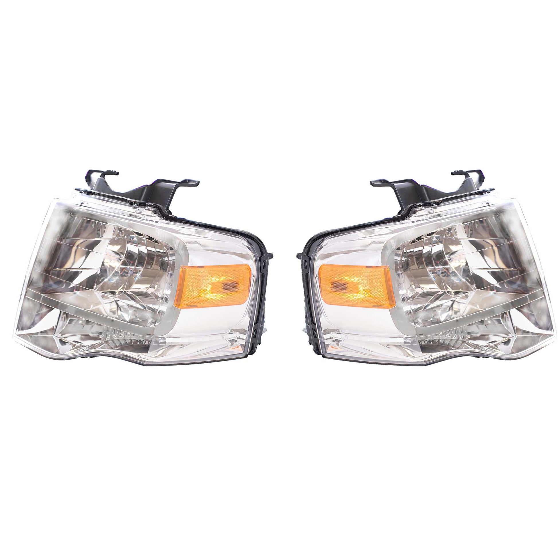 Brock Aftermarket Replacement Driver Left Passenger Right Halogen Combination Headlight Assembly With Chrome Bezel Set Compatible With 2007-2014 Ford Expedition