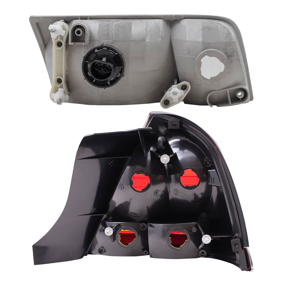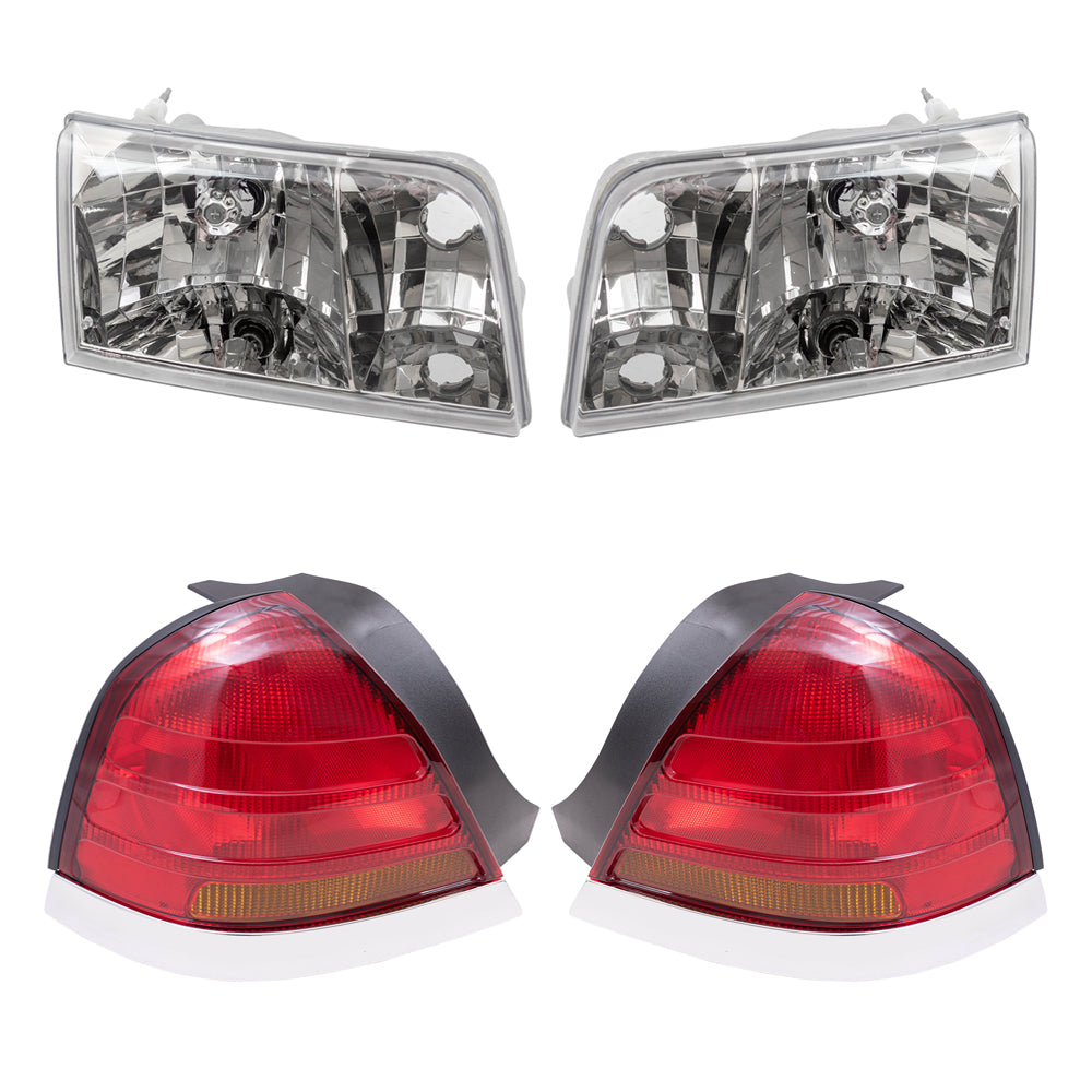 Driver and Passenger Side Halogen Headlight Assemblies and Tail Light Units 4 Piece Set