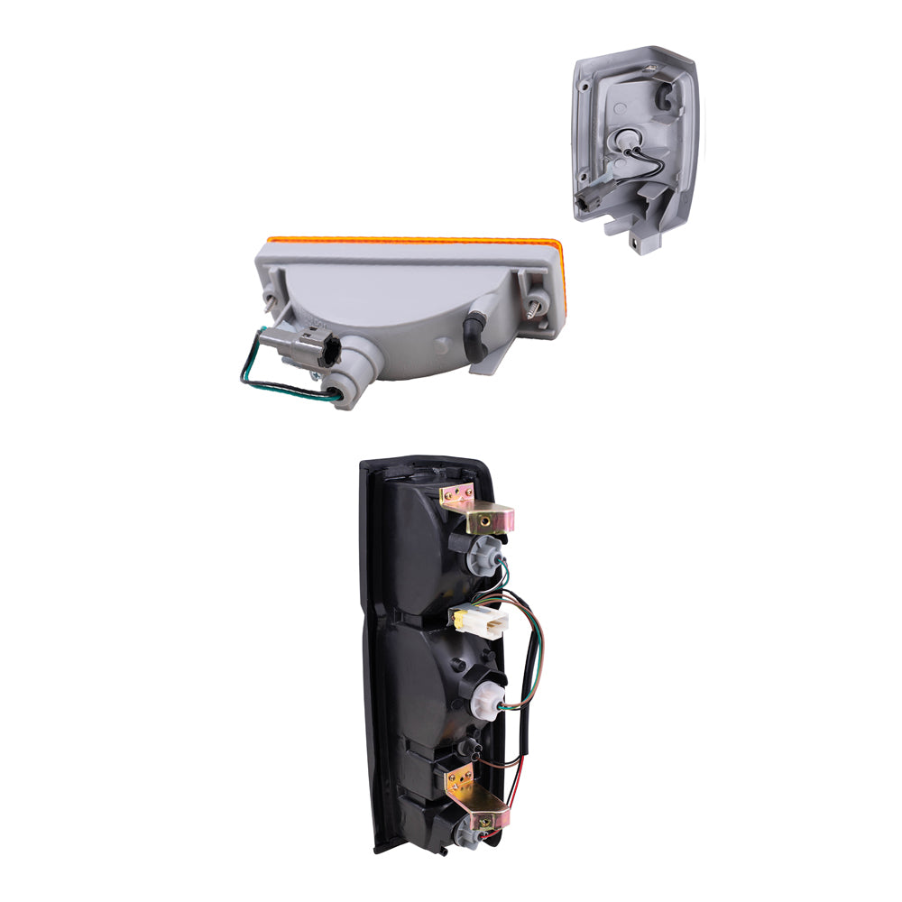 Brock Replacement Side Marker Light Assemblies with Black Bezels, Park/Signal Light Assemblies and Tail Light Assemblies 6 Piece Set Compatible with 1990-1994 D21 WITHOUT Dual Rear Wheels