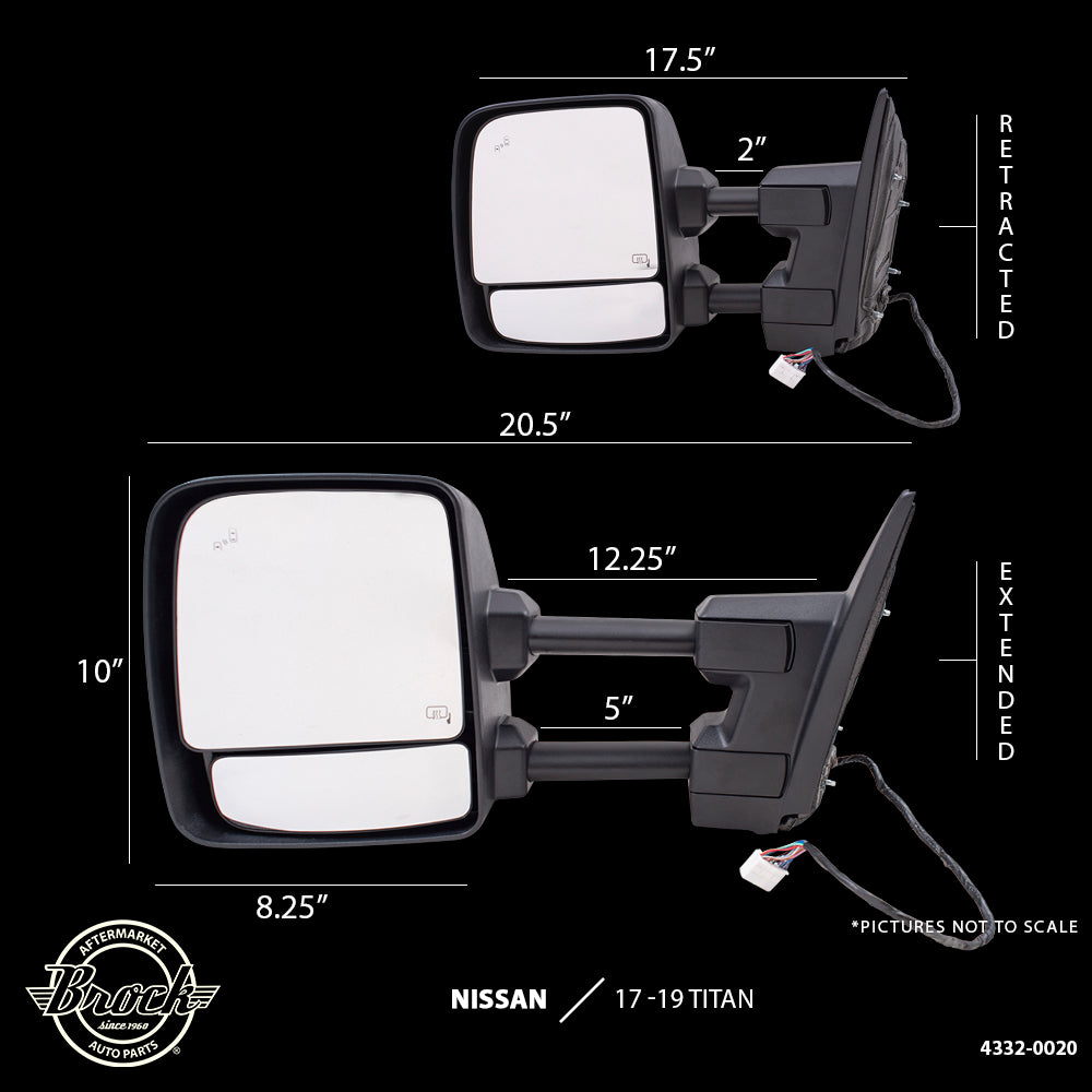 Brock Aftermarket Replacement Part Driver and Passenger Side Power Tow Mirrors Textured Black with Heat, Signal, Puddle Light, Blind Spot Detection & Memory Compatible with 2016-2019 Titan XD