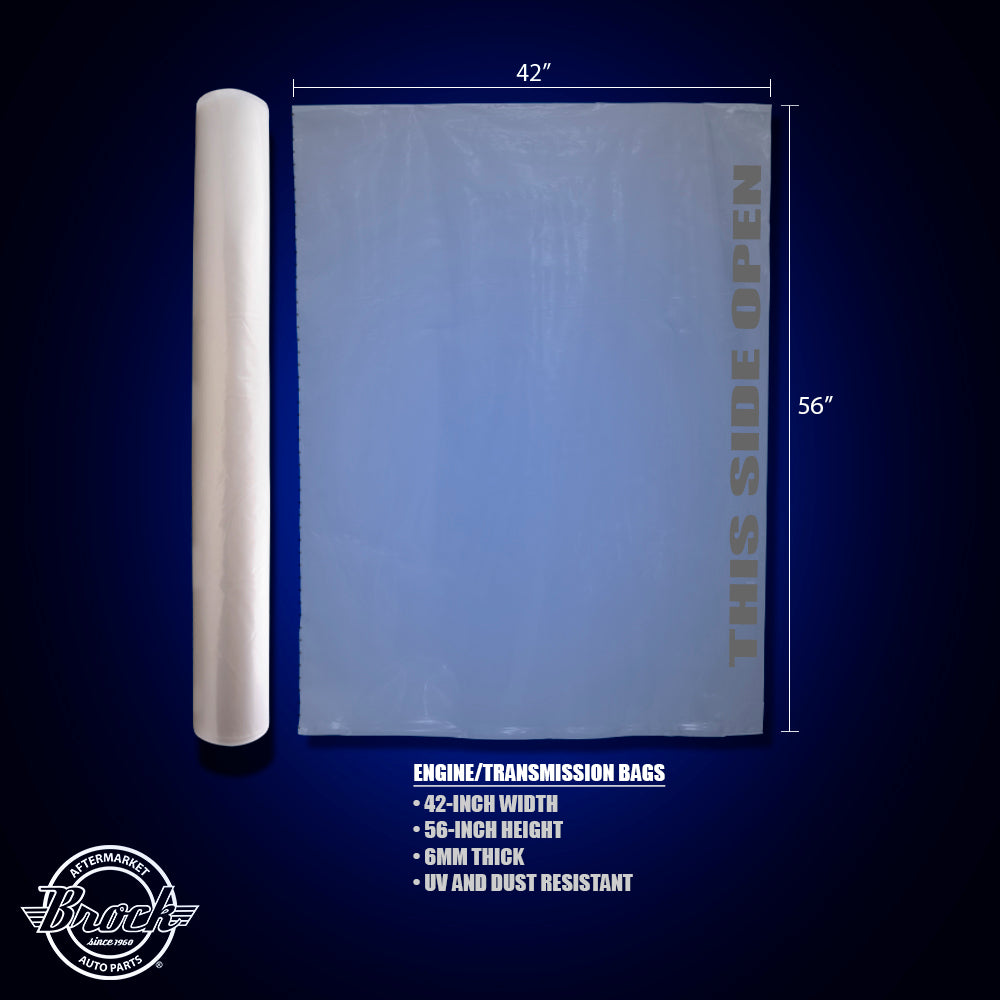 50 Piece Roll Engine Transmission Cover Storage Plastic Bags 56" x 42" x 6" Mil w/UV Dust Weather Protection for Auto Shop Repair Home Garage
