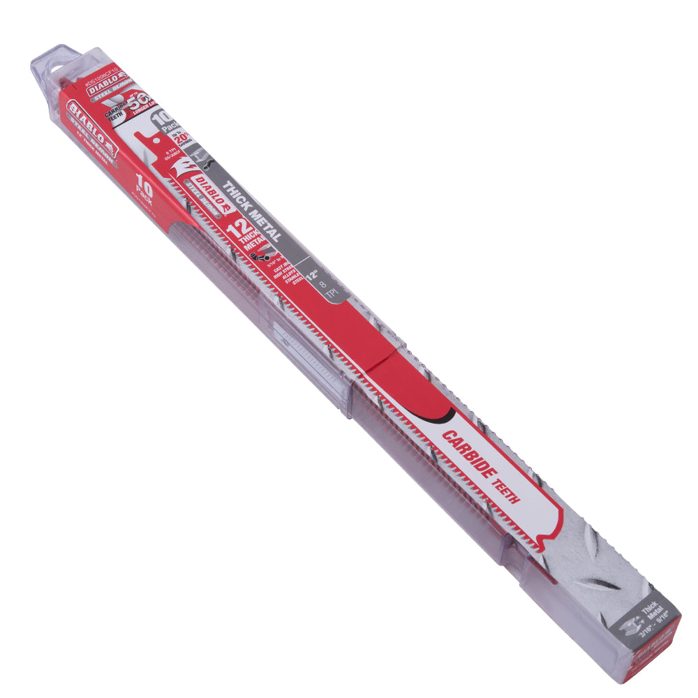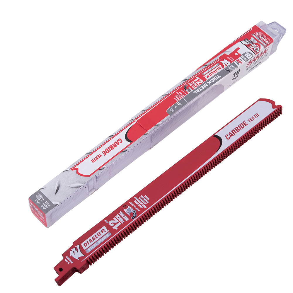 Diablo Steel Demon Carbide Reciprocating Saw Blade For Thick Metal (3/16 Inch-9/16 Inch) For Boron Steel-Ultra High Strength Steel-Stainless Steel-Cast Iron 12 Inch by 1 Inch 8 TPI 3 Pack
